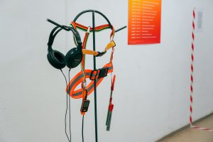 ktoré uvádza návštevníctvo do spôsobu použitia postroja a zapnutia MP3 zariadenia.