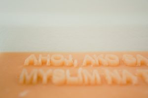ochraňuje telo vytvorené zo slov. Pri vstupe do objektu cítiť mäkký silikónový povrch